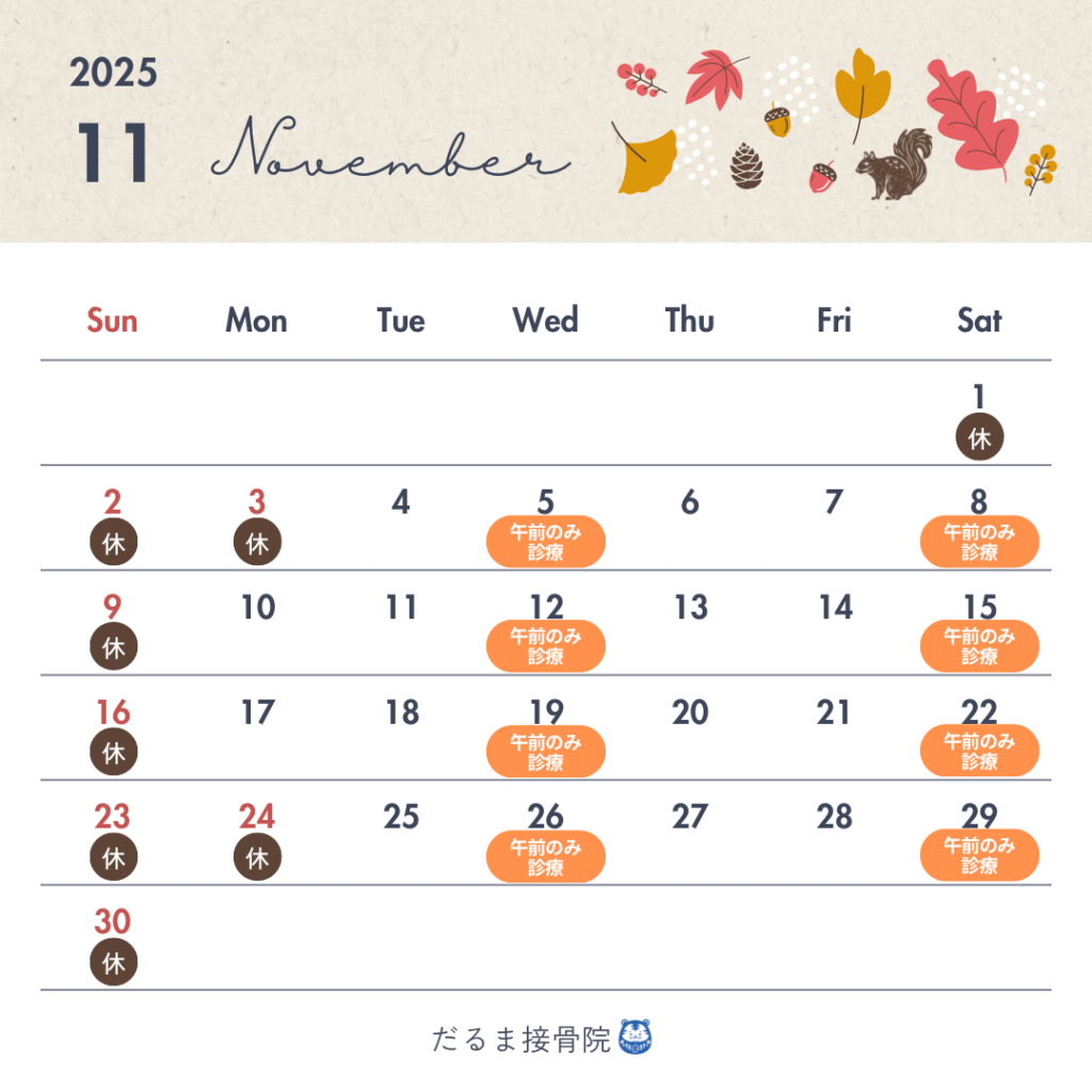 1日(土)は1日休診とさせていただきますので、よろしくお願いいたします。